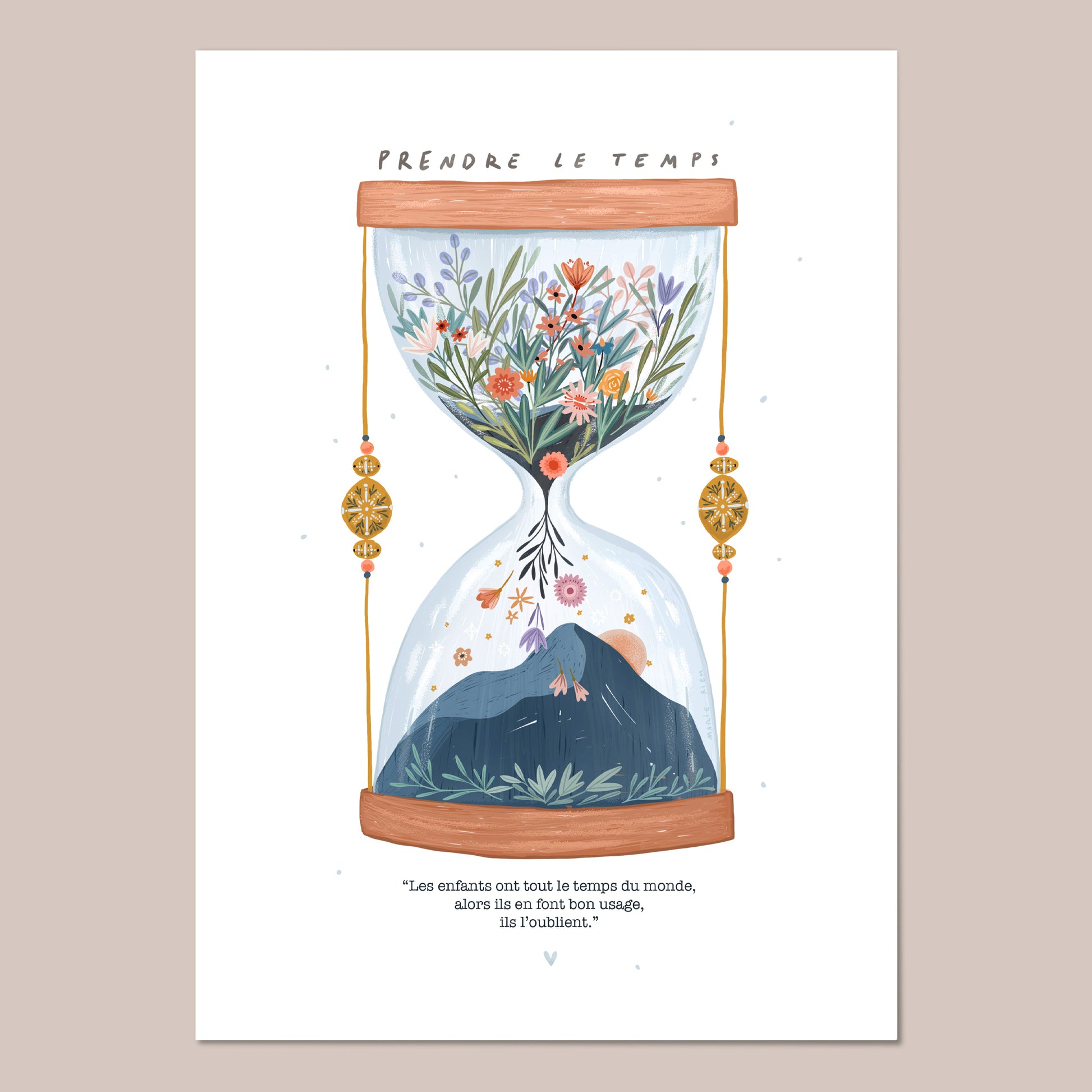 - Illustration imprimée sur un papier dessin épais (300 g) texturé (pour les formats A6, A5, A4, A3) -- (170 g pour le format A2)