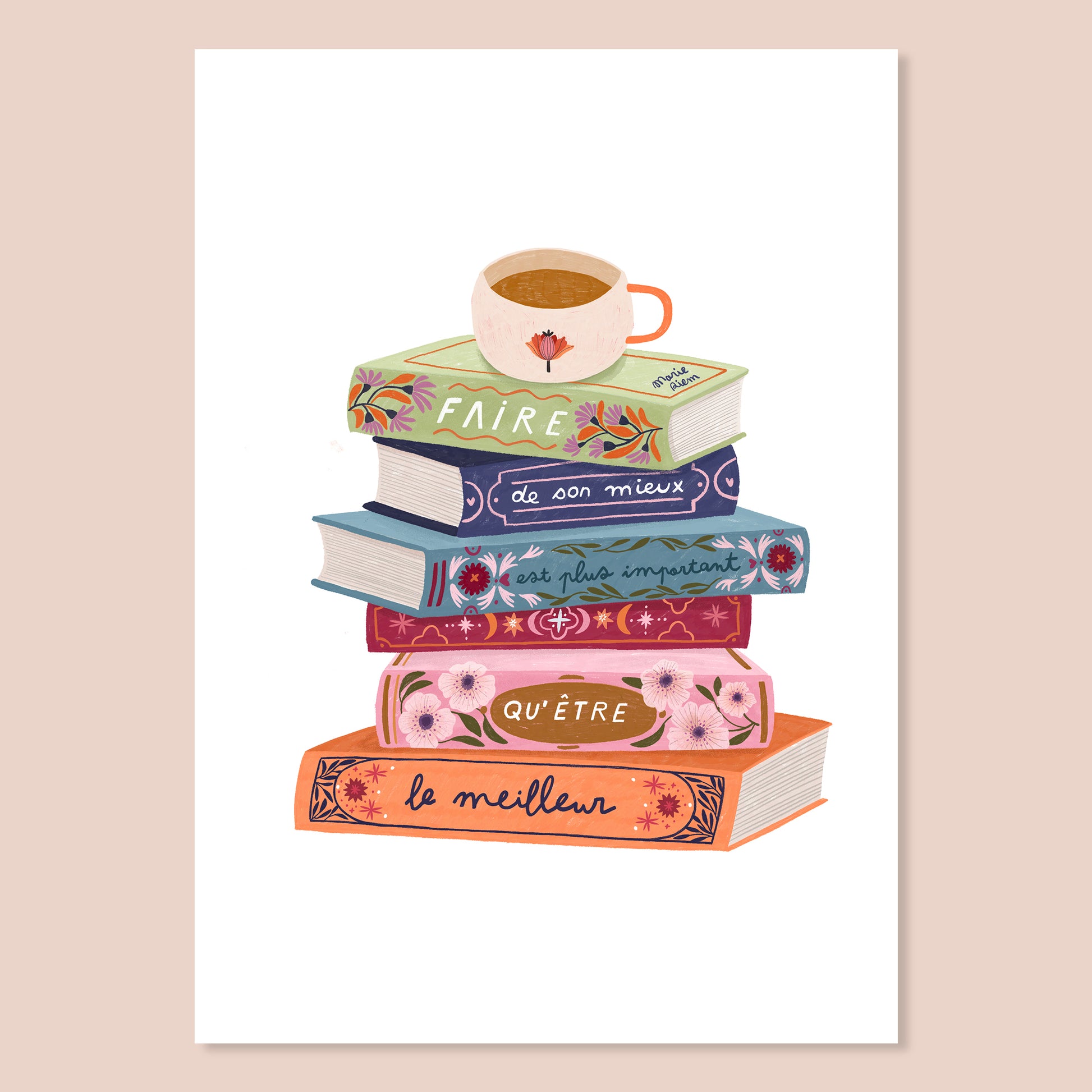 - Illustration imprimée sur un papier dessin épais (300 g) texturé (pour les formats A6, A5, A4, A3) -- (170 g pour le format A2)