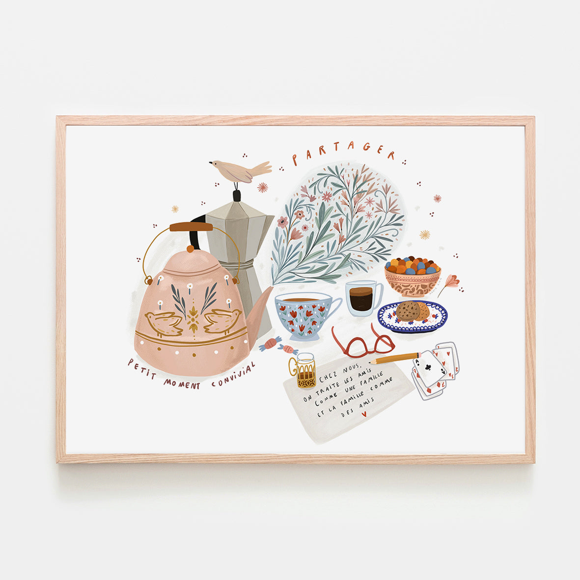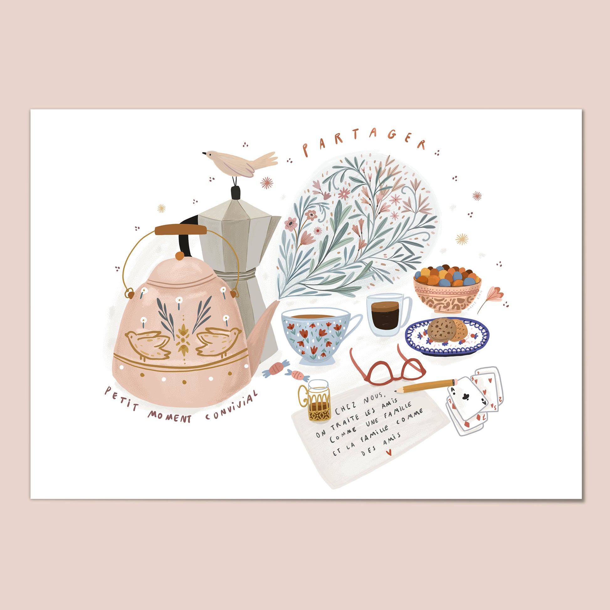 - Illustration imprimée sur un papier dessin épais (300 g) texturé (pour les formats A6, A5, A4, A3) -- (170 g pour le format A2)